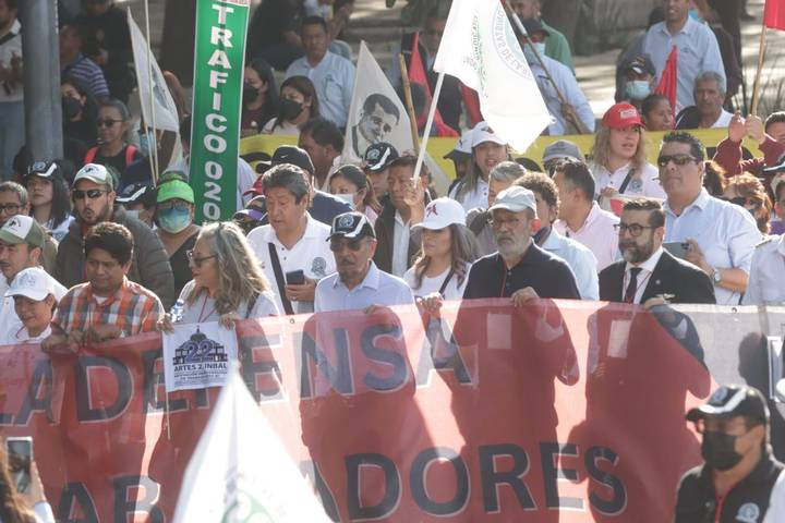 La movilización fue encabezada por el capitán Humberto Gual Ángeles, líder de ASPA; Carlos Hugo Morales, dirigente del STUNAM y Francisco Hernández Juárez, secretario general del Sindicato de Telefonistas de la República Mexicana (STRM).